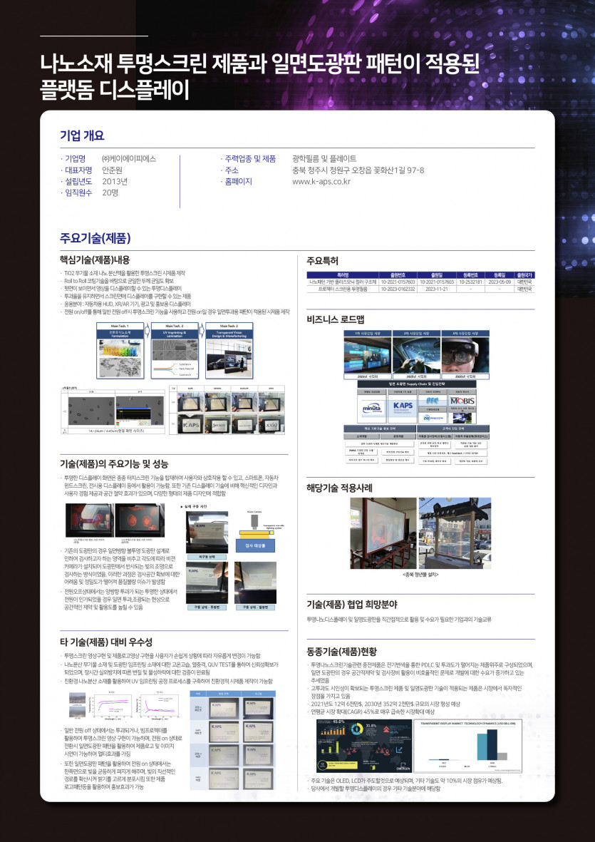 간략설명나노소재 투명스크린 제품과 일면도광판 패턴이 적용된 플랫돔 디스플레이