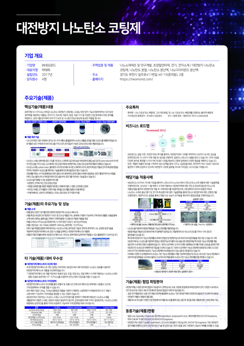 주력 업종 및 제품나노소재 제조 및 연구개발, 초정밀연마제, 전기, 전자소재, 대전방지 나노탄소 코팅제 등